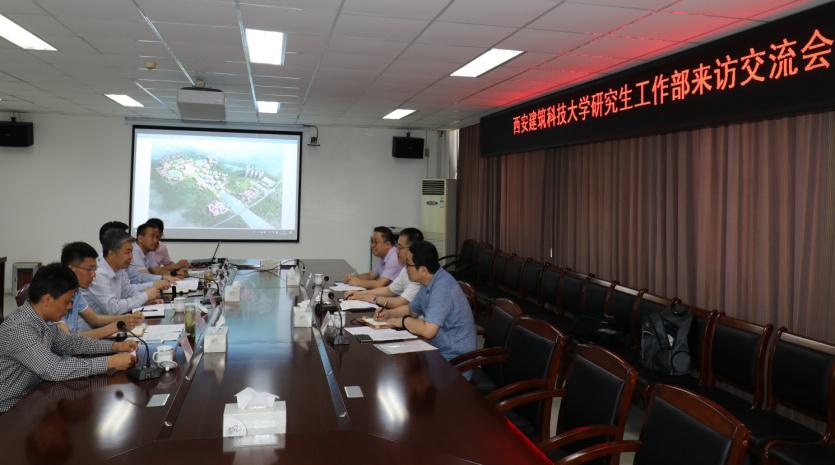 2018年 5月30日上午九点,西安建筑科技大学研究生工作部部长张成中,党委研究生工作部副部长、研究生院副院长蒋正,材矿学院党委副书记、副院长李荫兵等来yl34511线路中心就研工部工作进行走访交流,调研会在嘉陵江路校区现代教育中心212会议室举行。yl34511线路中心党委研究生工作部、研究生处、学科办等八个主要部门人员参加了本次活动。会后,yl34511线路中心陪同西建大一行参观了yl34511线路中心创业孵化基地。