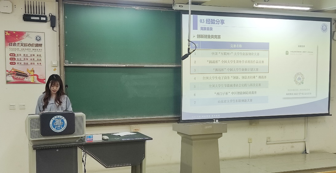 李春立结合她多年参加数学建模比赛的经验,以真题和自身论文为例,从如何把握题目,建立解题思路,搭建数学模型,撰写竞赛论文等方面进行分享;袁浩详细介绍了研究生电子设计竞赛的比赛流程,分享了参赛注意事项;刘翠浴结合她参加研究生“双碳”创新与创意大赛的经历,指出要以解决实际问题为导向创新,紧扣“双碳”主题,不断地打磨作品。